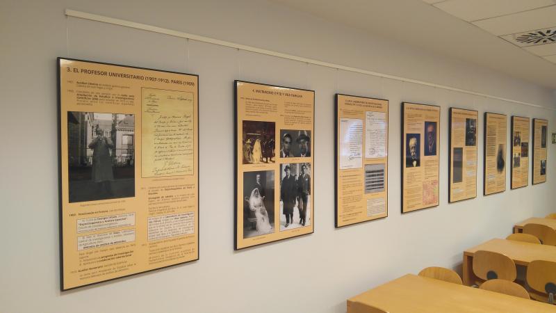 Todas estas cuestiones quedan recogidas e ilustradas en la Exposición. En primer lugar, pueden estudiarse los contenidos de catorce densos paneles que, combinado textos y fotografías originales proporcionadas por la familia, aportan una completa biografía científica de Ángel del Campo organizada en los siguientes apartados: