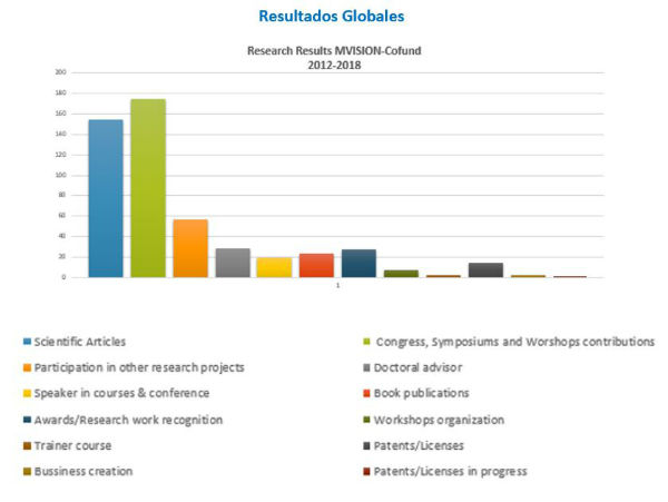 De forma global, entre los resultados más destacables tenemos la participación en 175 Congresos, Symposiums, Conferencias y Seminarios, la publicación de 154 artículos en revistas científicas, la participación en 57 proyectos de investigación y la presentación de 14 solicitudes de patentes/licencias. Además, en la tercera convocatoria de fellows se han creado dos empresas que darán continuidad al trabajo investigador de tres de los 26 fellows participantes en el programa.
