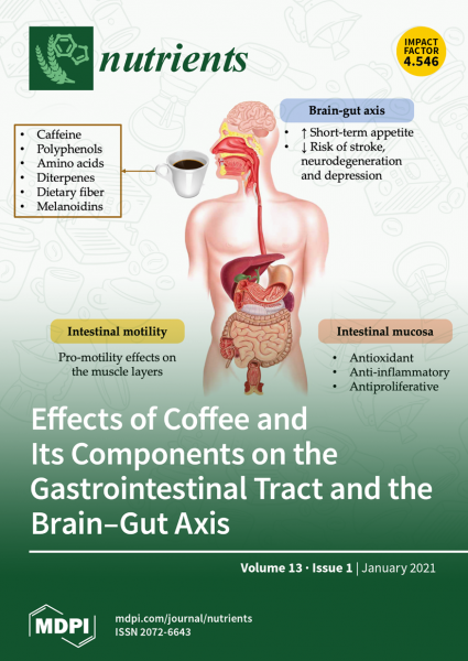 El equipo de investigación del grupo NeuGut de la Universidad Rey Juan Carlos (URJC), en colaboración con científicos del Food Bioscience Group del Instituto de Investigación en Ciencias de la Alimentación (CIAL-CSIC-UAM), ha realizado una revisión sobre los estudios llevados a cabo en relación a los efectos que produce el consumo de café sobre el eje intestino-cerebro. Este trabajo ha sido portada del último número de la prestigiosa revista científica Nutrients y la imagen resume los efectos que los principales componentes del café pueden producir en el eje intestino-cerebro: “En el intestino pueden favorecer la motilidad y proteger la mucosa y en el cerebro pueden mejorar el apetito y disminuir el riesgo de diferentes enfermedades neurológicas y trastornos mentales”, explican los investigadores.
