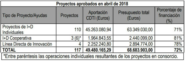 El Consejo de Administración del Centro para el Desarrollo Tecnológico Industrial (CDTI), Entidad Pública Empresarial (E.P.E.) dependiente del Ministerio de Economía, Industria y Competitividad, ha aprobado 133 nuevos proyectos de I+D+I con un presupuesto total que asciende a 92,16 millones de euros. El CDTI aportará 67,71 millones de euros impulsando, de esta manera, la I+D+I empresarial.