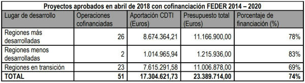 En este Consejo, 49 de las operaciones aprobadas son cofinanciadas con fondos de la ronda FEDER 2014-2020 –Programa Operativo PluriRegional de Crecimiento Inteligente–, con una aportación pública (CDTI+FEDER) que asciende a 17,42 millones de euros.