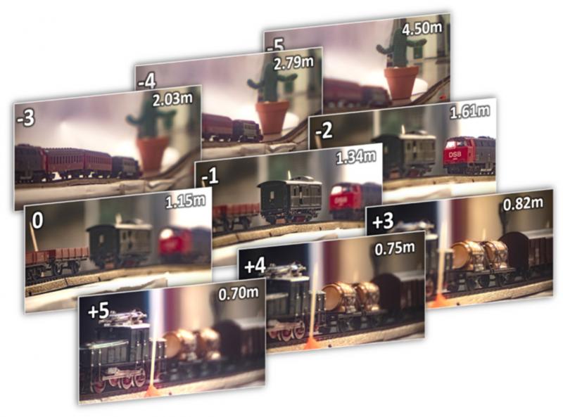La combinación de distintos patrones de campos aplicados a los dos dispositivos en cascada emulan distintas lentes. Los campos eléctricos se aplican con la misma facilidad como en una pantalla plana cotidiana.