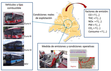 La modelización de emisiones contaminantes generadas por fuentes móviles requiere disponer de información detallada de la actividad del tráfico de la zona que se desea analizar. Esta información puede provenir de modelos predeterminados para una red vial, o bien, de mediciones directas con equipos embarcados en los vehículos y su posterior tratamiento para el cálculo de los correspondientes factores de emisión. Esta última ha sido la forma en la que los investigadores de la UPM se han enfrentado al reto de cuantificar las emisiones de los autobuses urbanos de Madrid.