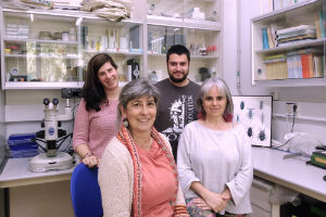 Pilar Rodríguez sentada delante a la izquierda. Junto a ella, Maite Martínez-Madrid, y detrás Leire Méndez-Fernández e Iñigo Moreno-Ocio. (Pilar Rodríguez-UPV/EHU)
