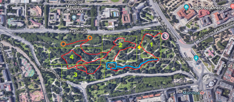 En primer lugar, se llevará a cabo la actividad histórica, en la cual se explicará a los participantes (niños y jóvenes) la historia de los tres centros que se localizaban en la zona, de forma breve y sencilla para que sea ameno. En segundo lugar, se procederá a realizar una actividad botánica de identificación de especies, después se llevará a cabo una actividad geológica relacionada con el Manantial de la Salud. En cuarto y último lugar, se visitará el nido de ametralladoras y los fortines de la Guerra Civil contando brevemente cómo se creó el Parque del Oeste y su historia.