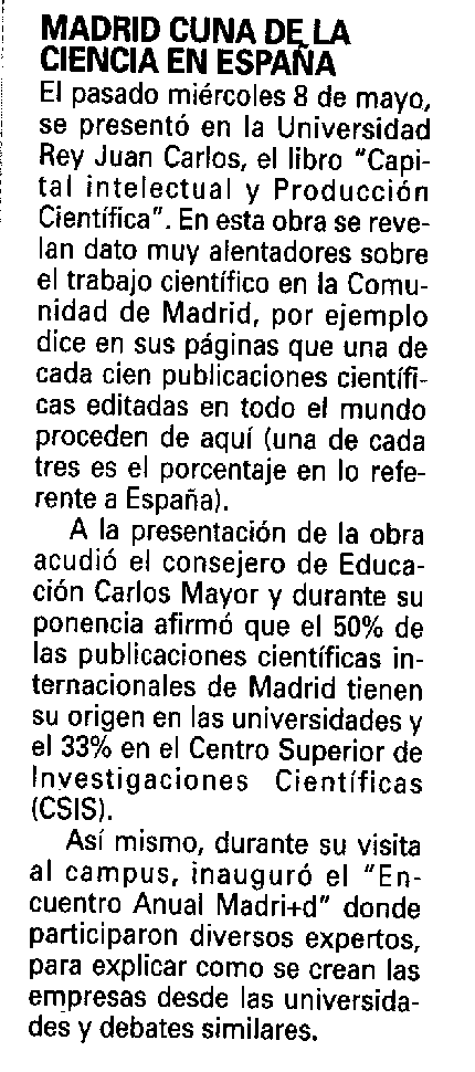 El sitio de Internet madri+d es un lugar que combina los aspectos de la Cultura Científica (CTS) con los propios de la Innovación Tecnológica.