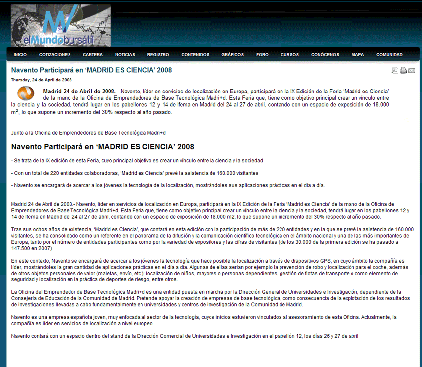 Navento, líder en servicios de localización en Europa, participará en la IX Edición de la Feria 'Madrid es Ciencia' de la mano de la Oficina de Emprendedores de Base Tecnológica madri+d.
