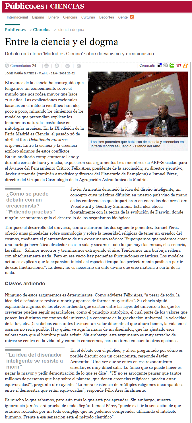 Debate en la feria 'Madrid es Ciencia' sobre darwinismo y creacionismo.