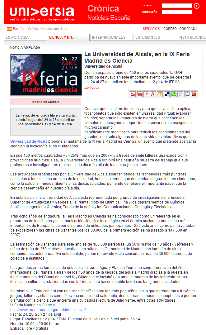 La Universidad de Alcalá, en la IX Feria Madrid es Ciencia