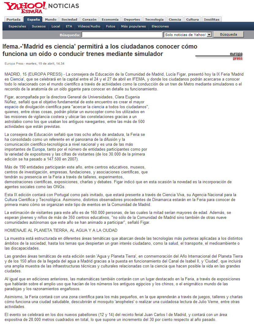 La consejera de Educación de la Comunidad de Madrid, Lucía Figar, presentó hoy la IX Feria 'Madrid es Ciencia'.