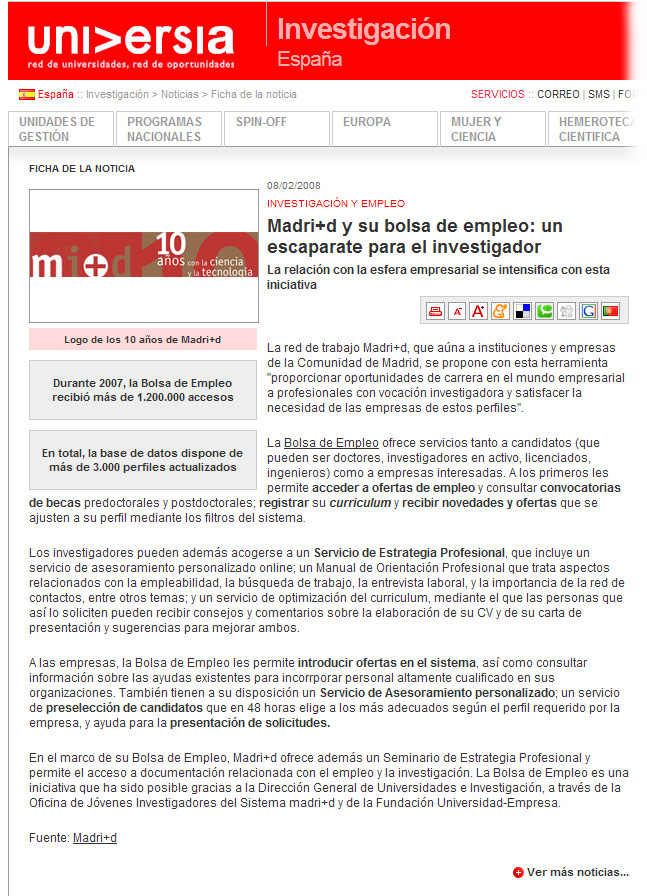 madri+d y su bolsa de empleo: un escaparate para el investigador