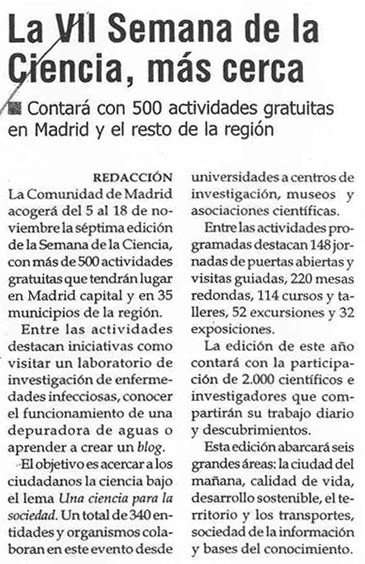 La VII Semana de la Ciencia llena la Comunidad de talleres, jornadas, cursos y visitas guiadas.