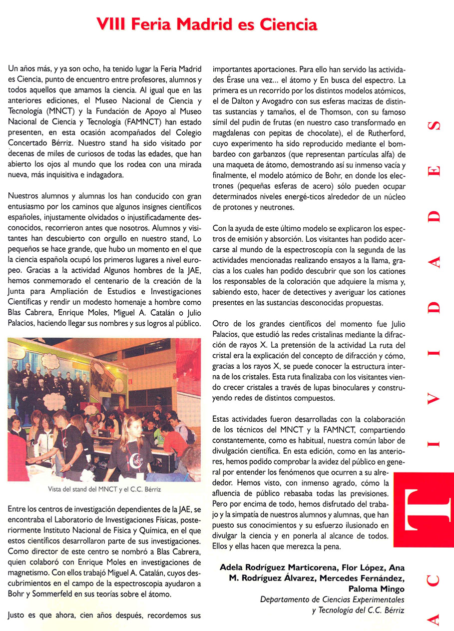 Un año más, y ya son ocho, ha tenido lugar la Feria Madrid es Ciencia, punto de encuentro entre profesores, alumnos, y todos aquellos que amamos la ciencia.