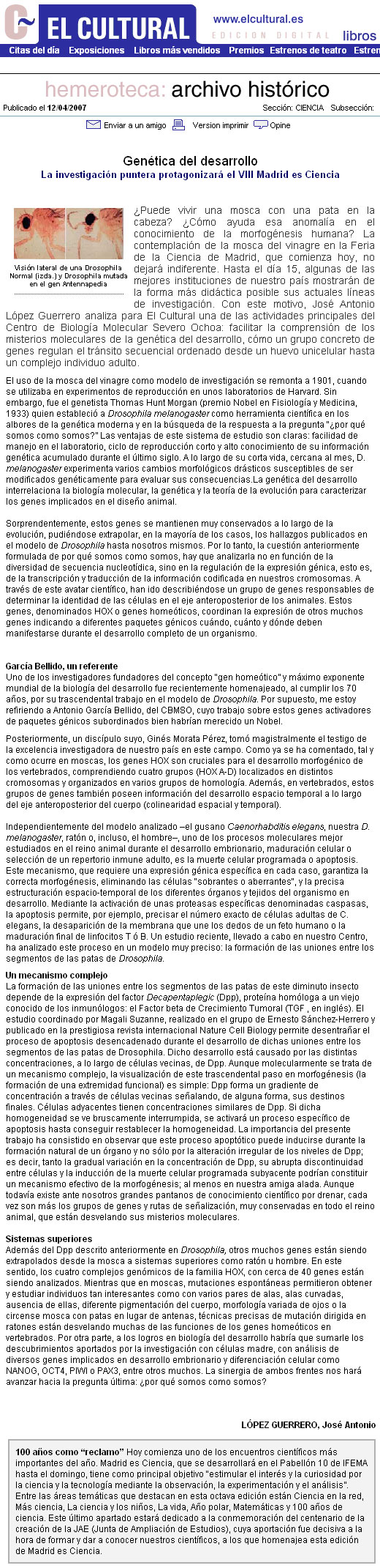 La contemplación de la mosca del vinagre en la Feria de la Ciencia de Madrid, que comienza hoy, no dejará indiferente. Hasta el día 15, algunas de las mejores instituciones de nuestro país mostrarán de la forma más didáctica posible sus actuales líneas de investigación.