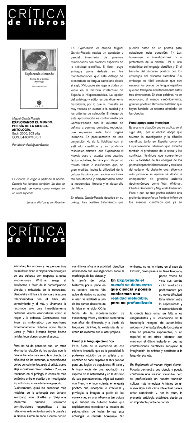 En Explorando el mundo se demuestra que ciencia y poesía conforman una realidad ineludible, pero no profundizada.