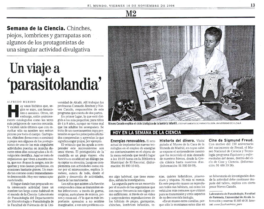 Semana de la Ciencia. Chinches, piojos, lombrices y garrapatas son algunos de los protagonistas de una singular actividad divulgativa