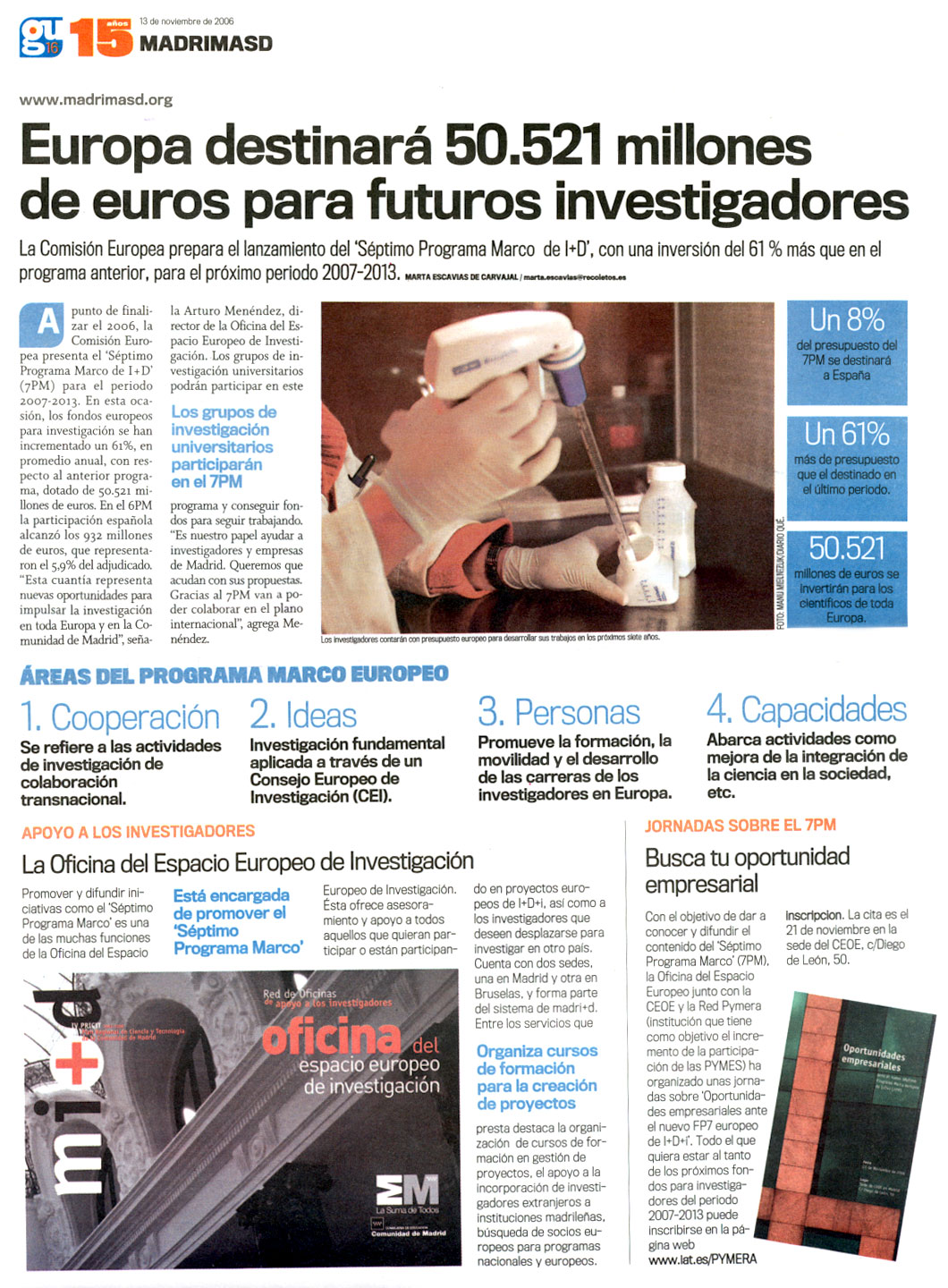 La Comisión Europea prepara el lanzamiento del 'Sèptimo progama Marco de I+D', con una inversión del 61% más que en el programa anterior, para el próximo periodo 2007-2013