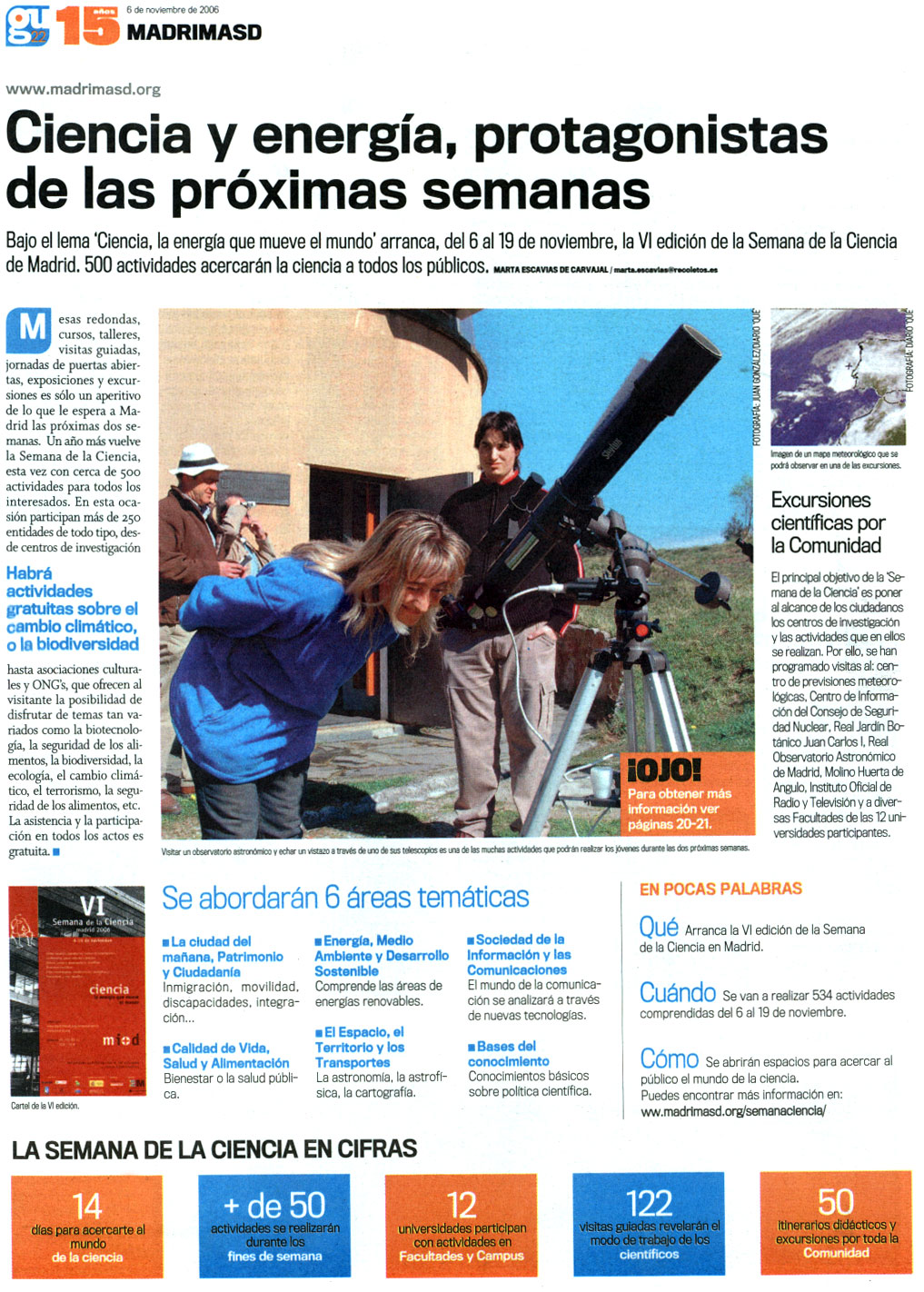 Bajo el lema 'Ciencia, la energía que mueve el mundo' arranca, del 6 al 9 de noviembre, la VI edición de la Semana de la Ciencia de Madrid. 500 actividades acercarán la ciencia a todos los públicos
