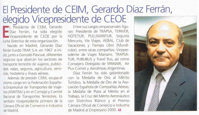 El Presidente de CIEM, Gerardo Díaz Ferrán, elegido Vicepresidente de CEOE por la Junta Directiva de esta organización.