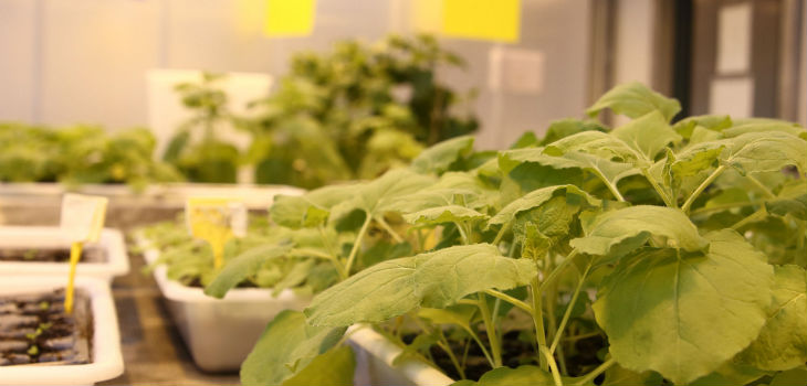 Plantas de Nicotiana benthamiana en el invernadero del CRAG. / CRAG
