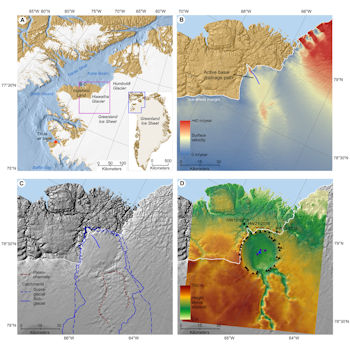 Descubierto bajo el hielo de Groenlandia uno de los mayores cráteres del planeta 25.11.2018 Los expertos creen que el agujero, de 31 kilómetros de diámetro y 320 metros de profundidad, es fruto de un meteorito de hierro que impactó hace al menos 12.000 años.
