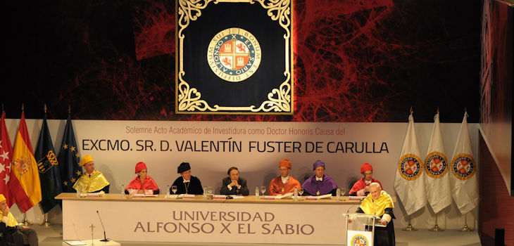 El cardiólogo Valentín Fuster de Carulla, investido doctor "Honoris Causa" por la Universidad Alfonso X el Sabio 30.10.2018 La laudatio corrió a cargo del Dr. Enrique Asín Cardiel, director de la Cátedra de Salud Cardiovascular de la Universidad Alfonso X el Sabio, quien ejerció en el acto de investidura como "padrino" del eminente científico.