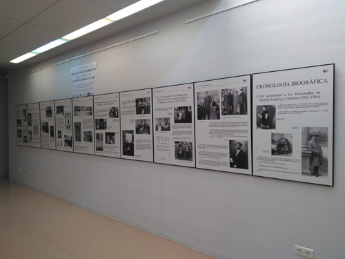 La Exposición actual, preparada para la Facultad de CC. Químicas de la UCM tras su exhibición en octubre en la Real Academia de Ciencias Exactas Físicas y Naturales de Madrid (RACSAM) con el título de 'Enrique Moles Ormella: químico español', empieza con una sección de 10 paneles dedicados a la 'Cronología biográfica de Enrique Moles'. En ellos, combinando fotografías y textos descriptivos, se organiza su complicada trayectoria vital y científica en cuatro períodos sucesivos significativos: I. Del nacimiento a los Doctorados en Madrid, Leipzig y Ginebra (1883-1916), II. En el Laboratorio de Investigaciones Físicas ‘de Cabrera’ hasta la Cátedra en la Facultad de Ciencias (1917-1927), III. Del intenso "trabajo alegre y de la alegría trabajadora” al exilio (1928-1939), y IV. De París a la cárcel y al final de su vida (1939-1953).