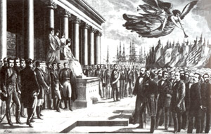 Alegoría de la Unión Latino-Americana. Litografía [siglo XIX]. París, Bibliothèque Nationale