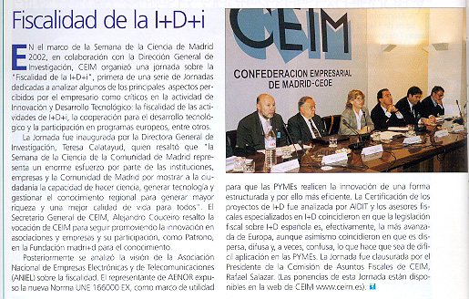 En el marco de la Semana de la Ciencia de Madrid 2002, en colaboración con la Dirección General de Investigación, CEIM organizó una jornada sobre la Fiscalidad de la I+D+I.