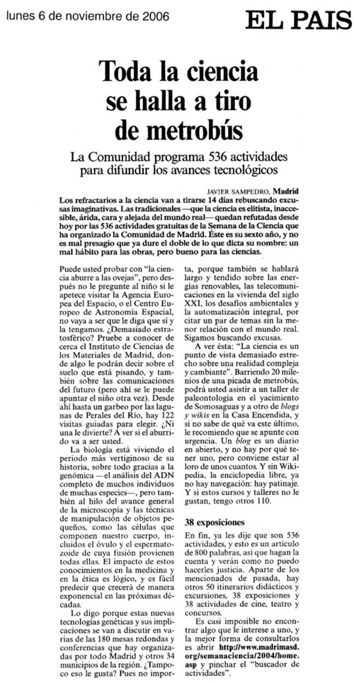 VI Semana de la Ciencia. Madrid 2006. 6 al 19 de noviembre