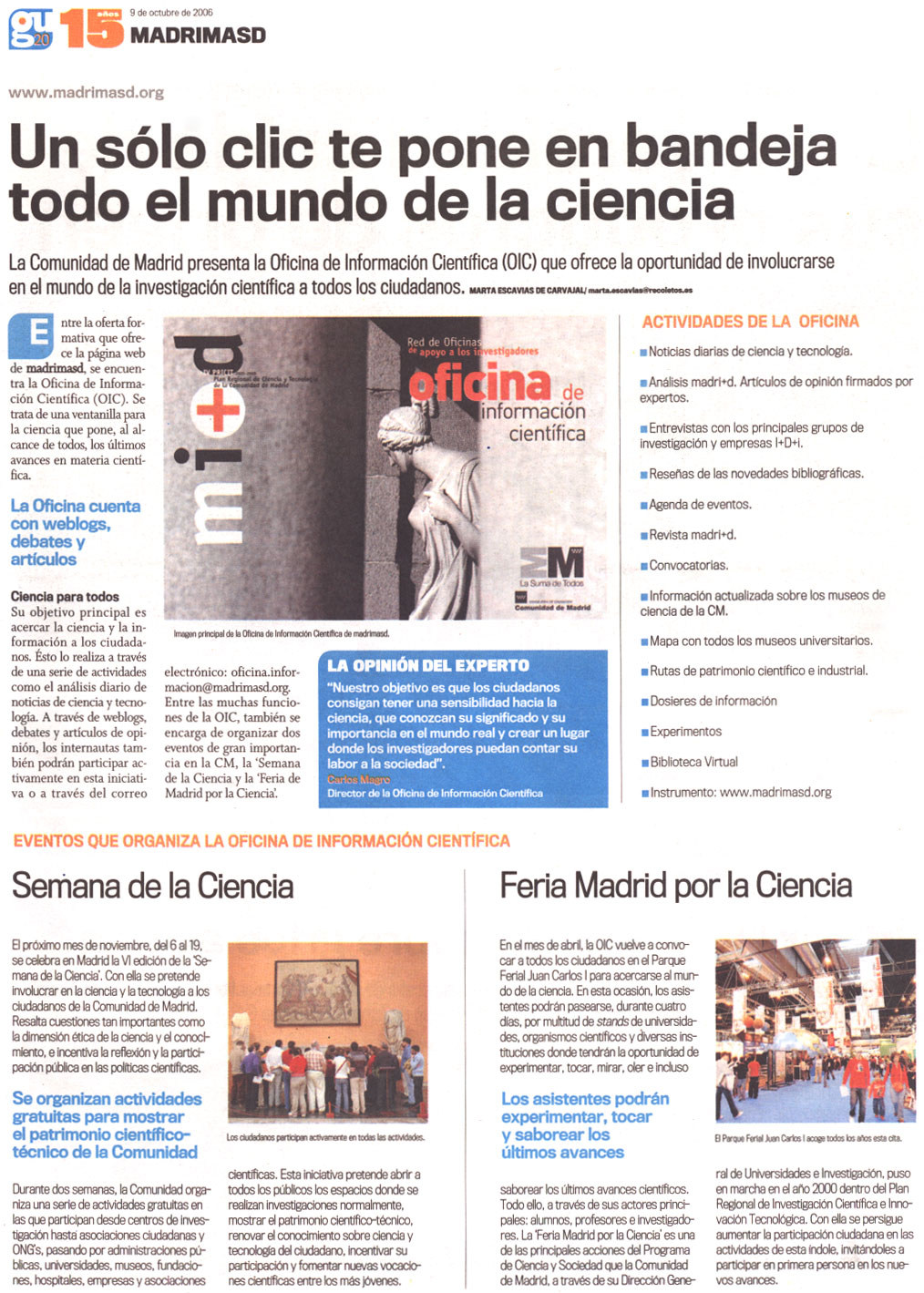 La Comunidad de Madrid presenta la Oficina Científica (OIC) que ofrece la oportunidad de involucrarse en el mundo de la investigación científica a todos los ciudadanos