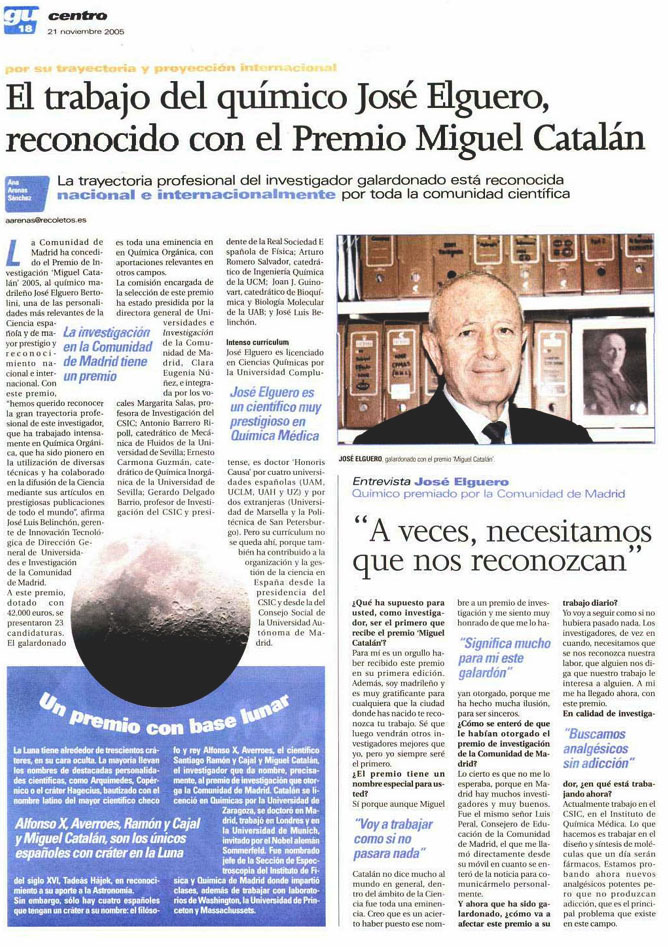 El trabajo del químico José Elguero, reconocido con el Premio Miguel Catalán