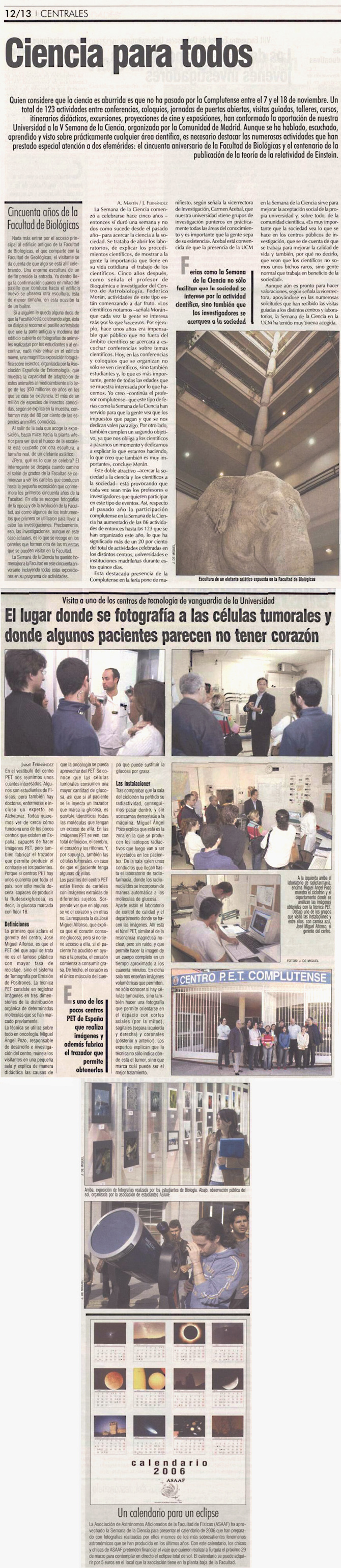 Un total de 123 actividades entre conferencias, coloquios, talleres, cursos, excursiones, proyecciones de cine, etc., han conformado la aportación de la Universidad Complutense a la V Semana de la Ciencia, organizada por la Comunidad de Madrid.