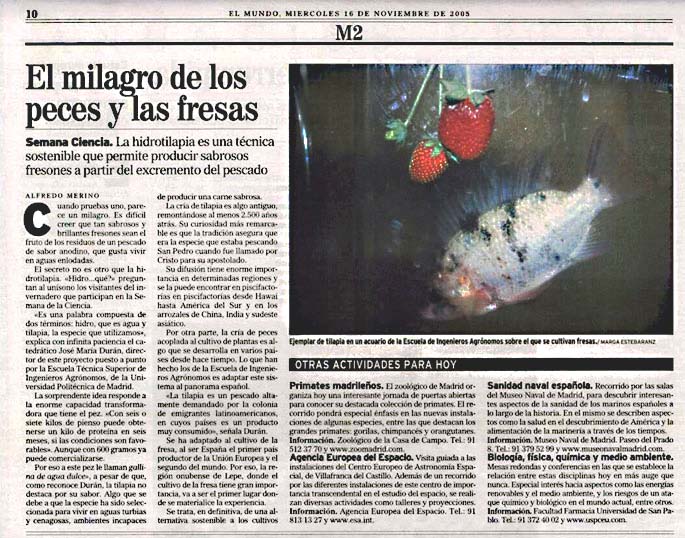 Semana de la ciencia. La hidrotilapia es una técnica sostenible que permite producir sabrosos fresones a partir del excremento del pescado.