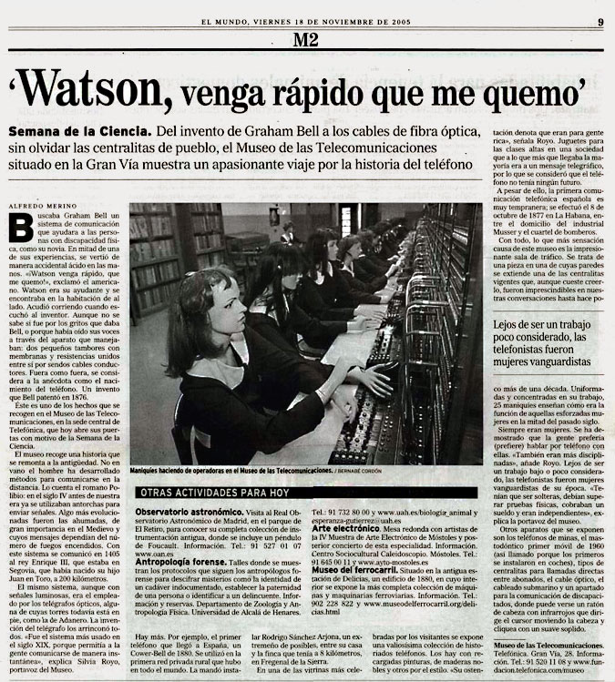Semana de la ciencia. Del invento de Graham Bell a los cables de fibra óptica, sin olvidar las centralitas de pueblo, el Museo de las Telecomunicaciones situado en la Gran Vía muestra un apasionante viaje por la historia del teléfono.