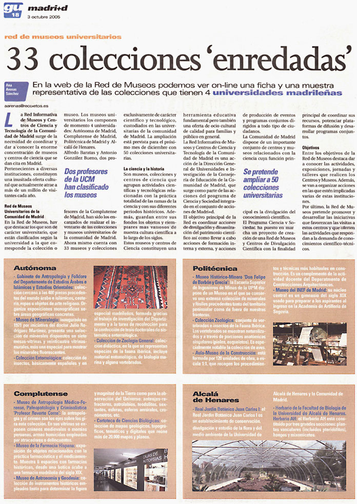 En la Web de la Red de Museos podemos ver on-line una ficha y una muestra representativa de las colecciones que tienen 4 universidades madrileñas.