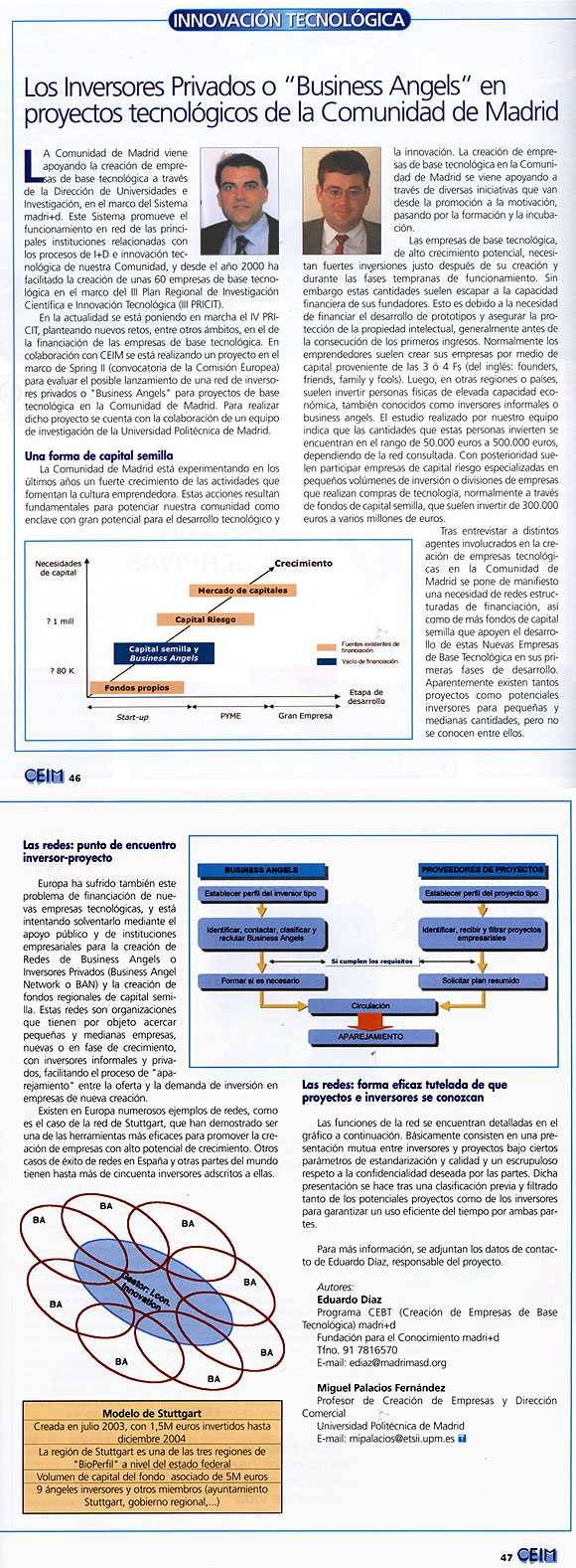 Los Inversores Privados o Business Angels en proyectos tecnológicos de la Comunidad de Madrid