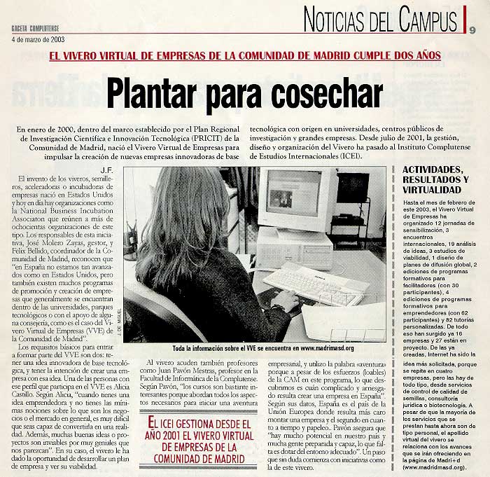 En enero de 2000, dentro del marco establecido por el Plan Regional de Investigación Científica e Innovación Tecnológica (PRICIT) de la Comunidad de Madrid, nació el Vivero Virtual de Empresas para impulsar la creación de nuevas empresas innovadoras de base tecnológica con origen en universidades, centros públicos de investigación y grandes empresas.