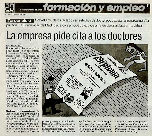 Sólo el 17% de los titulados en estudios de doctorado trabajan en una compañía privada. La Comunidad de Madrid acerca a ambos colectivos a través de una plataforma virtual.