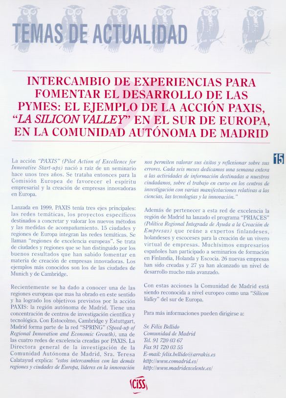 Intercambio de experiencias para fomentar el desarrollo de las pymes: El ejemplo de la acción Paxis, La Silicon Valley en el sur de Europa, en la Comunidad de Madrid
