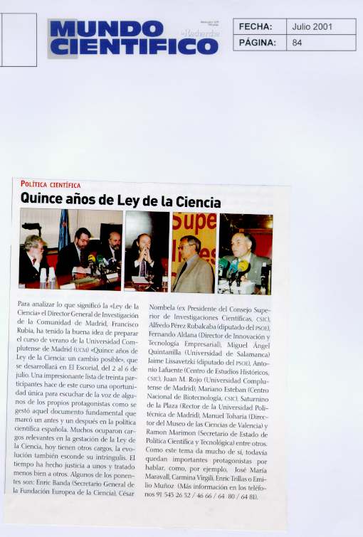 Para analizar lo que significó la Ley de la Ciencia el Director General de Investigación de la Comunidad de Madrid, Frnacisco Rubia, ha preparado el curso de verano ...