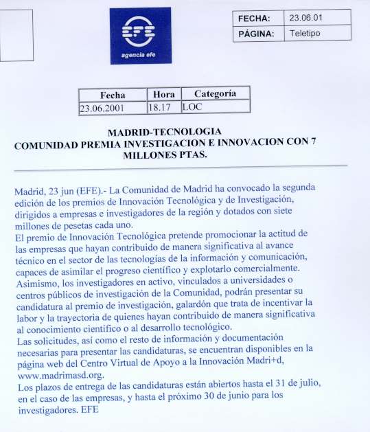 La Comunidad de Madrid ha convocado la segunda edición de los premios de Innovación Tecnológica y de Investigación, dirigidos a empresas e investigadores de la región y dotados con 7 millones de ptas cada uno.