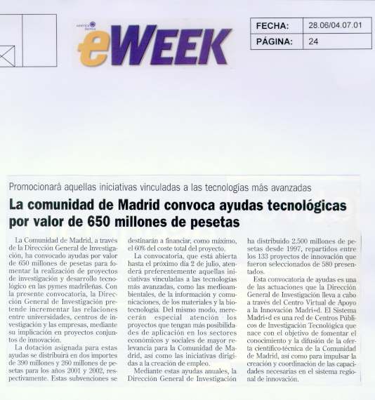 La Comunidad de Madrid, a través de la Dirección General de Investigación, ha convocado ayudas por valor de 650 millones de pesetas para fomentar la realización de proyectos de investigación.