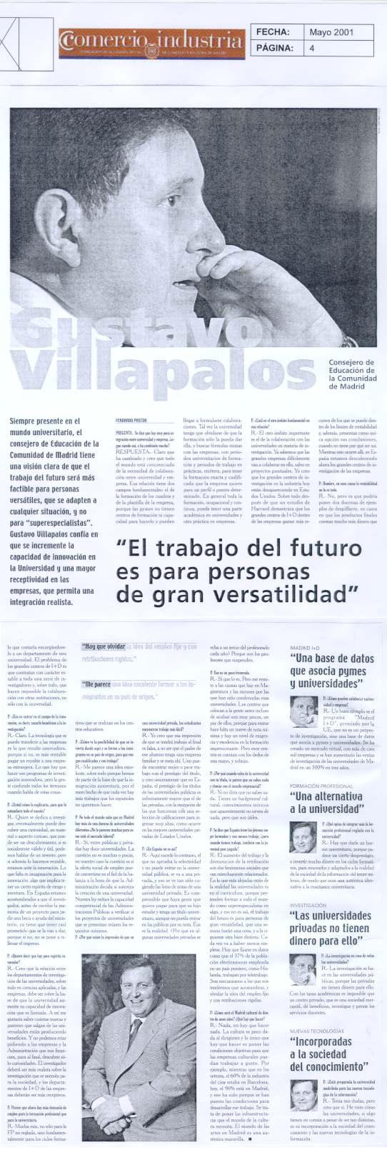 Gustavo Villapalos.: Siempre presente en el mundo universitario, el consejero de Educación de la Comunidad de Madrid tiene una visión clara de que el trabajo del futuro será mas factible para personas versátiles, que se adapten a cualquier situación, ...