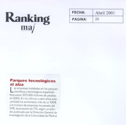 Las empresas instaladas en los parque científicos y tecnológicos españoles facturaron 370.000 millones de pesetas en 2000.