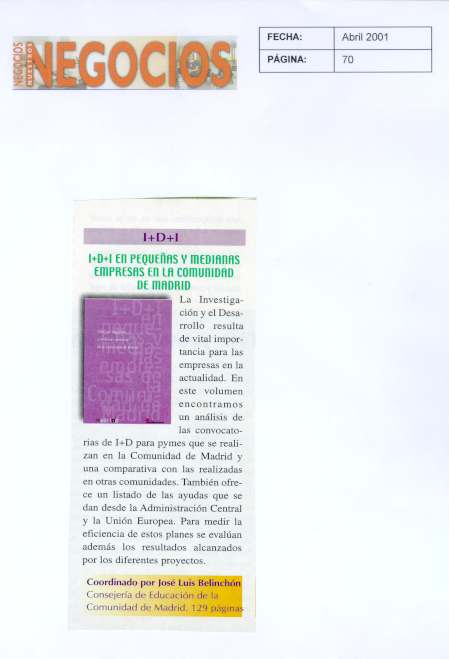 Presentación del libro I+D+I en pequeñas y medianas empresas de la CAM. Coordinador: José Luis Belinchón