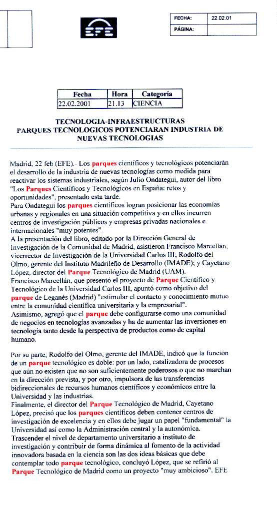 Los parques científicos y tecnológicos potenciarán el desarrollo de la industria de nuevas tecnologías.