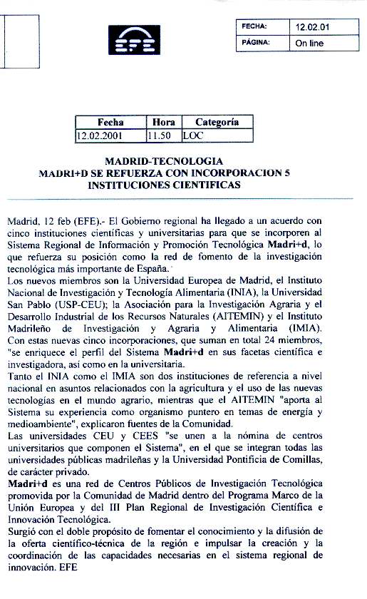 El gobierno regional ha llegado a un acuerdo con cinco instituciones científicas y universitaias paa que se incorporen al Sistema Regional de Información y Promoción Tecnológica Madi+d,...