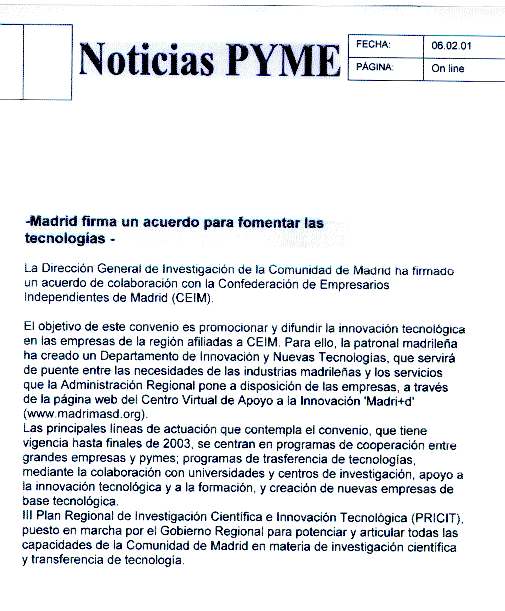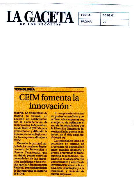 La Comunidad de Madrid ha firmado un acuerdo de colaboración con la Confedeación de Empresarios Independientes de Madid para promocionar y difundir la innovación tecnológica entre las empresas afiliadas a CEIM.