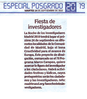 El diario 20 minutos hace una reseña de La Noche de los Investigadores - Madrid 2010.